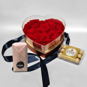 Express your deepest devotion with a gift that combines classic romance and sweet indulgence. Our Heart-Shaped 21 Red Roses arrangement is a masterfully crafted floral box designed to capture hearts. Featuring 21 premium-grade red roses meticulously shaped into a perfect heart, this luxury set is paired with a 370g Ferrero Rocher chocolate box, making it the benchmark for romantic gifting in the UAE.