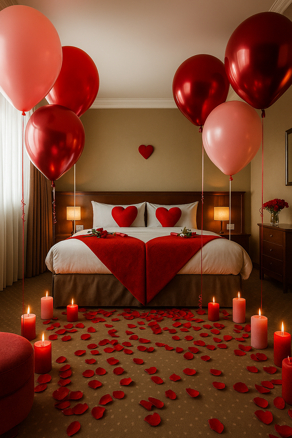 ✨ Create the ultimate romantic surprise with our luxury balloon and flower decoration in UAE. This elegant setup includes 6 helium balloons, 500 g of rose petals, 9 red candles, a 40-stem red rose bouquet, and two additional 10-stem red rose bouquets. Perfect for anniversaries, proposals, and special occasions in Dubai, Abu Dhabi, Sharjah, and across the UAE. Same-day delivery available to make your celebration unforgettable.