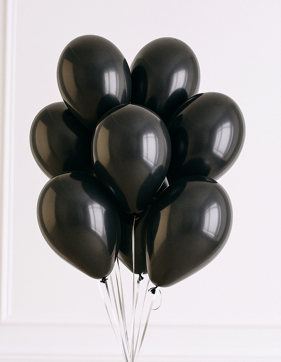 Add elegance and drama to your celebration with our Black Helium Balloon Bouquet. This 10-balloon bunch is ideal for modern parties, birthdays, graduations, anniversaries, Halloween celebrations, or corporate events. The striking black color adds sophistication and blends beautifully with silver, gold, or white balloons for a stunning décor effect.