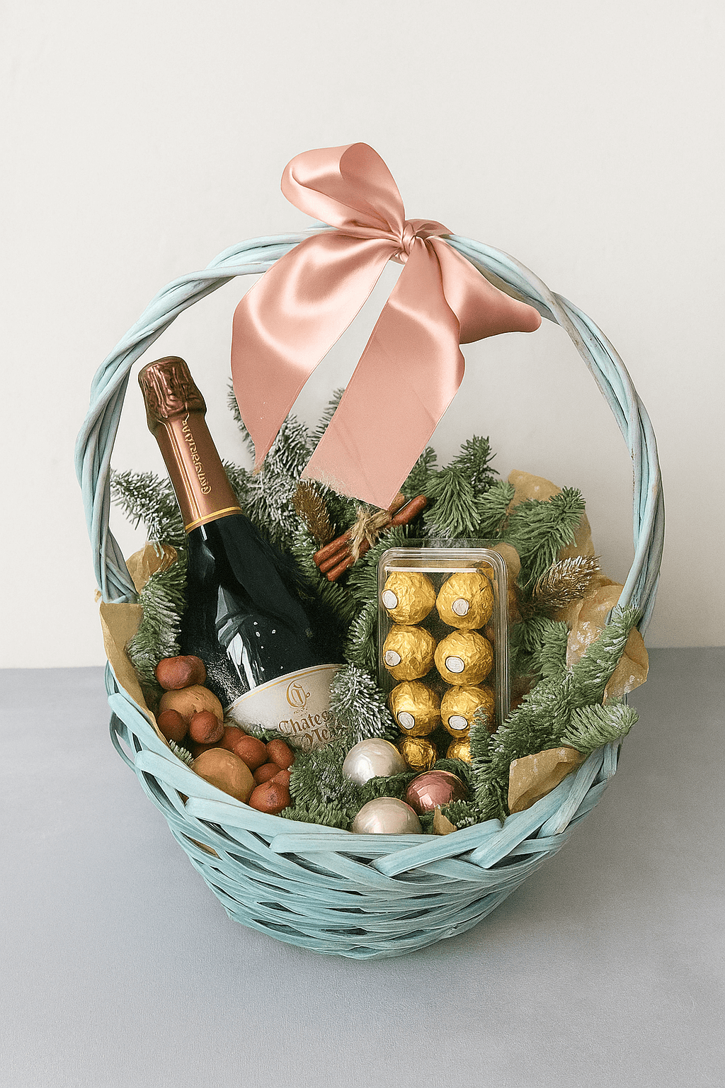 In the UAE’s luxury festive market, finding a gift that balances traditional celebration with local customs is key. Our champagne and chocolate gift basket stands out by providing a “Sparkling Gold” experience that is 100% non-alcoholic, making it ideal for both family and professional environments. As a leading provider of the champagne and chocolate gift basket in Dubai and Abu Dhabi, we nestle every item in an antique-finish wicker basket, ensuring your gift serves as a stunning “Winter Wonderland” centerpiece.