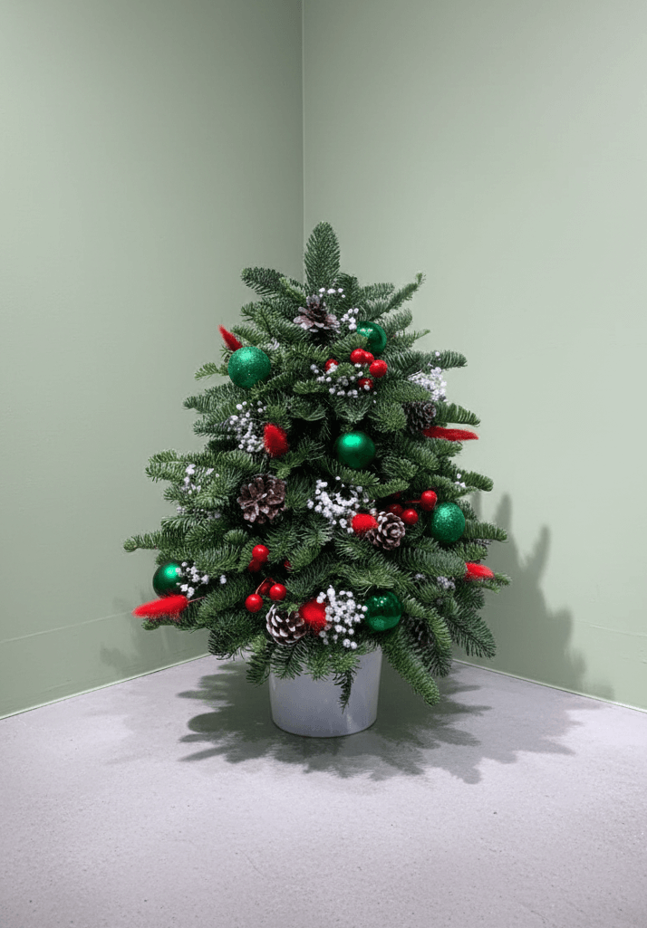 Miniature Classic Christmas Tree Centerpiece: Deep Green & Festive Decor