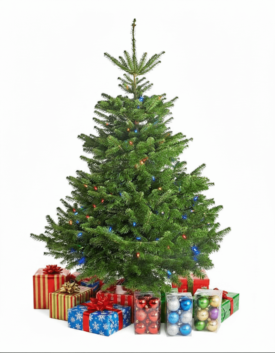 5-6 Ft Natural Christmas Noble fir Tree: Pre-Lit Multi-Color LEDs & Complete Décor Kit