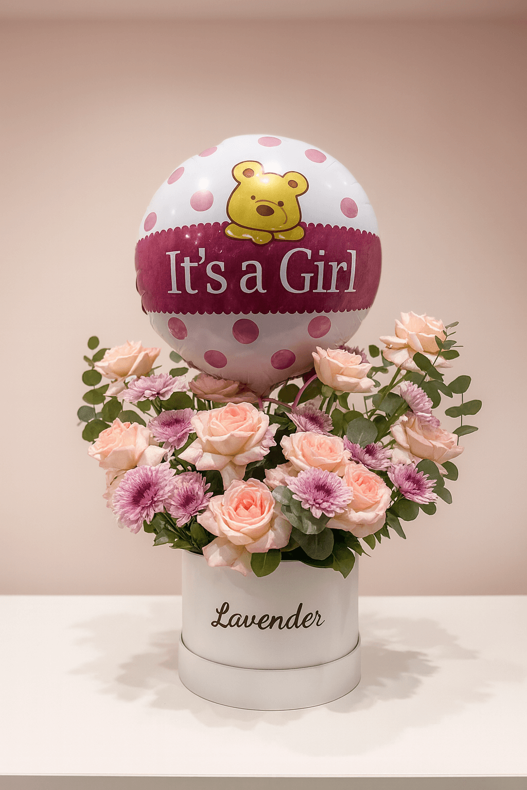 Congratulate the new parents with our signature “It’s a Girl” new baby girl gift box, a masterfully designed arrangement that radiates tenderness and joy. This premium floral box is the ideal way to welcome a newborn princess, whether you are sending a surprise for a hospital visit in Dubai or a homecoming celebration in Abu Dhabi. Combining the luxury of Esperance roses with the playful charm of a teddy bear-themed balloon, this new baby girl gift box is a complete celebration kit for the UAE’s most precious arrivals.