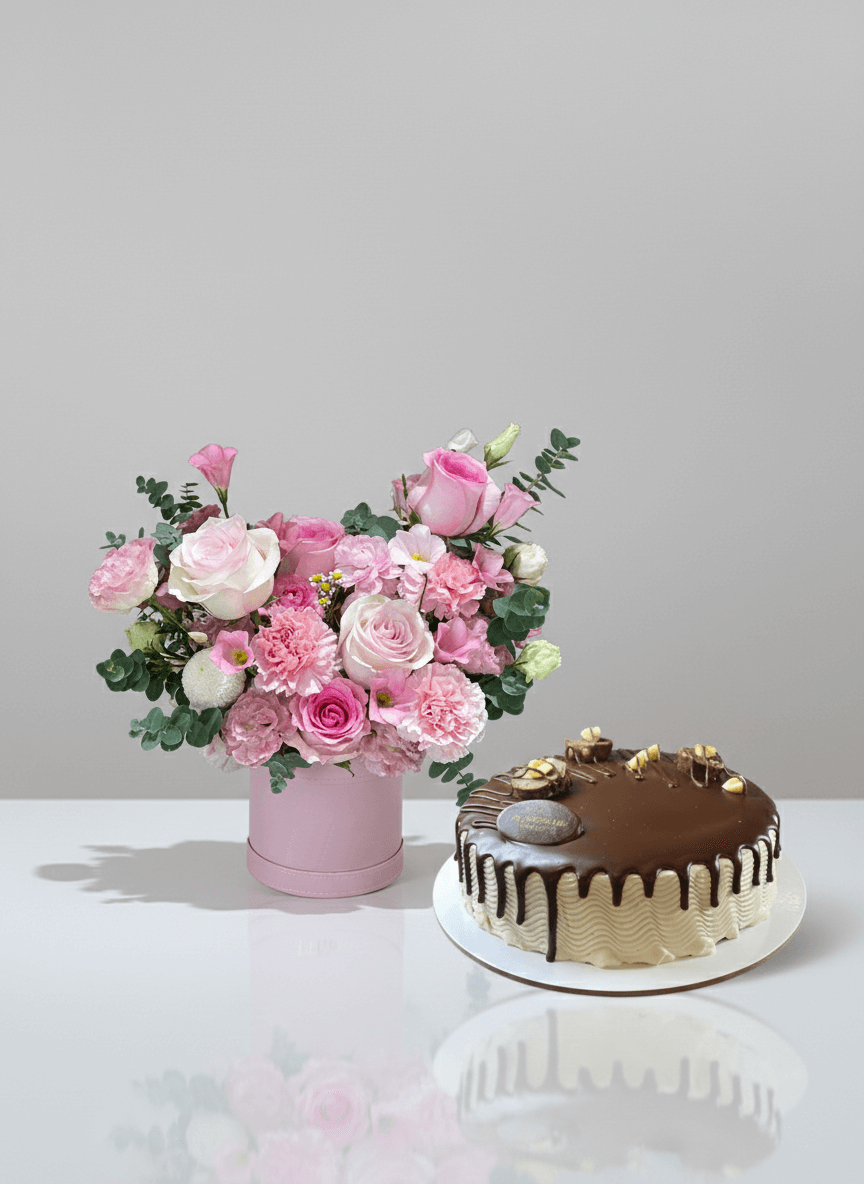 In the UAE’s boutique gifting market, nutella cake and flowers are prized for their universal appeal and sophisticated presentation. Our combo stands out by featuring a professionally styled pink box arrangement—combining 5 premium pink roses and 7 lovely pink carnations—paired with the world’s favorite chocolate-hazelnut flavor. As a leading provider of nutella cake and flowers in Dubai and Abu Dhabi, we prioritize freshness and “unboxing” beauty, ensuring your gift serves as a memorable centerpiece from the moment it arrives.