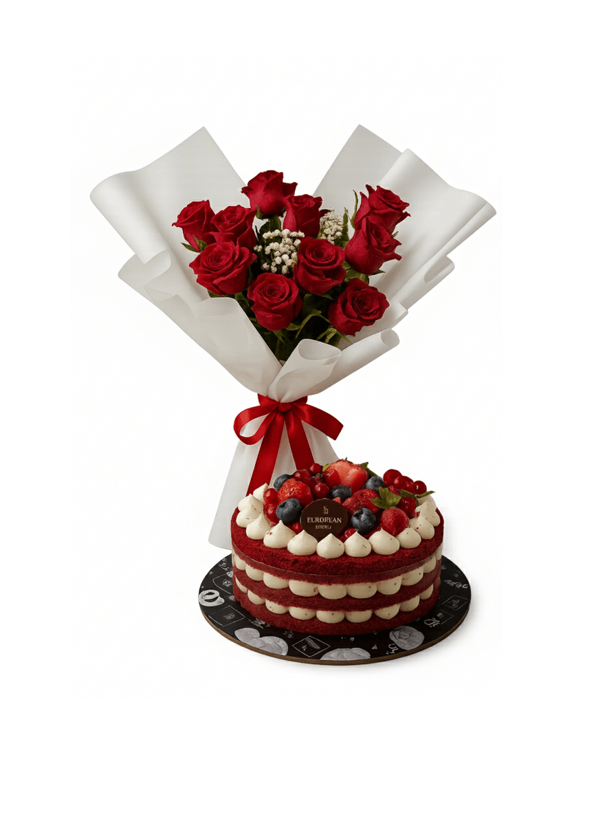 Red Roses and Red Velvet Cake Combo | The Ultimate Romantic Gift in UAE