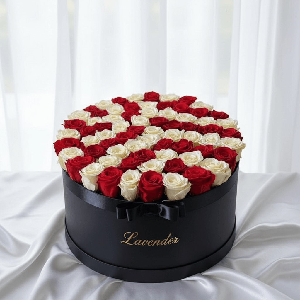 Celebrate strength, passion, and timeless elegance with our exquisite Royal Red & Ivory Rose Box, specially designed for Women’s Day. This luxurious arrangement features a breathtaking combination of rich red roses and creamy white roses, meticulously arranged in a premium black round hat box.