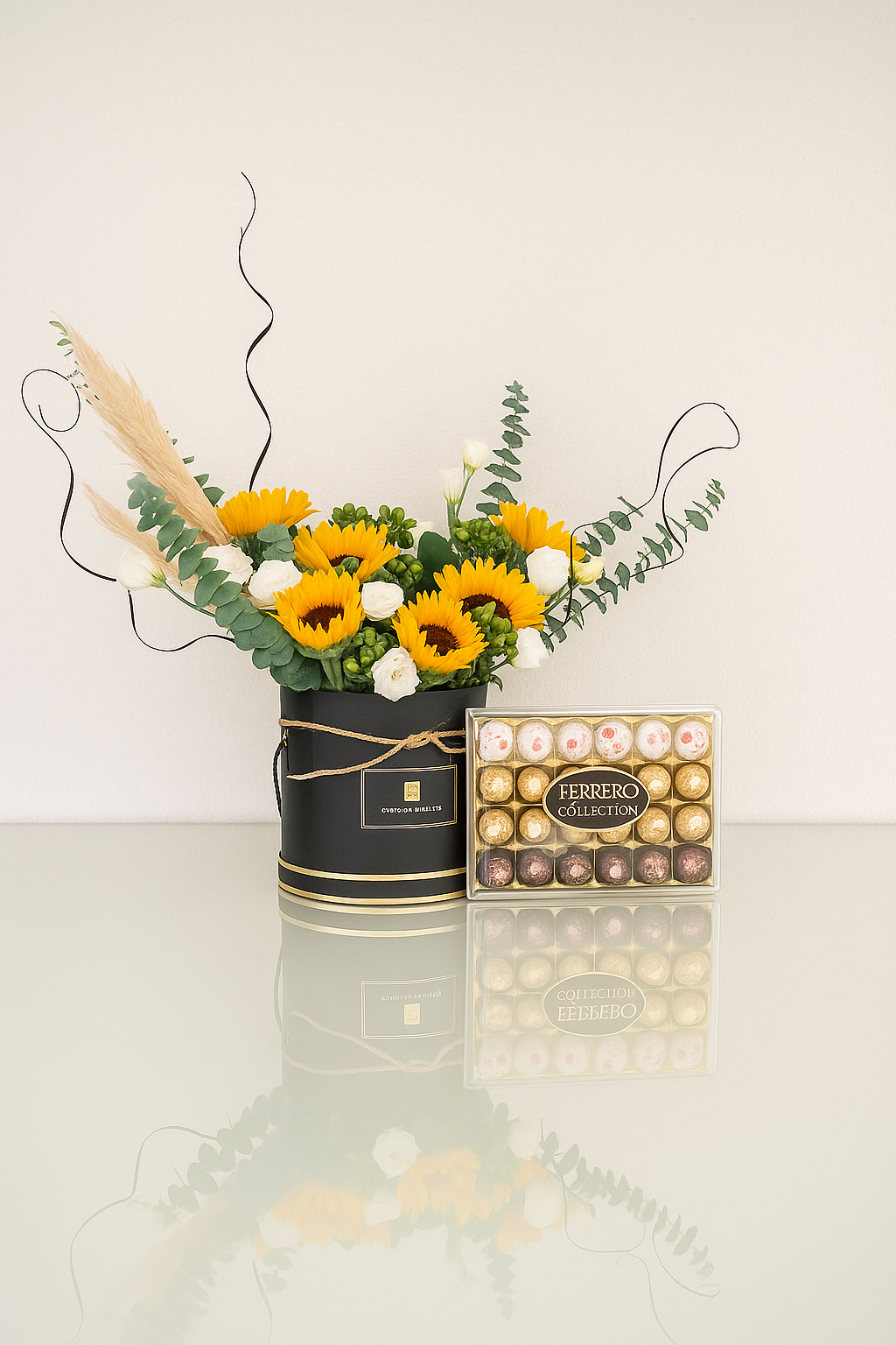 In the UAE’s vibrant gifting market, sunflowers are prized for their long-lasting beauty and ability to lift spirits. Our sunflower and chocolate gift stands out by combining the rustic charm of large yellow blooms with the world-famous indulgence of golden-wrapped Ferrero Rocher chocolates. As a leading provider of the sunflower and chocolate gift in Dubai and Abu Dhabi, we prioritize stem quality and chocolate freshness, ensuring your recipient receives a gift that looks as brilliant as it tastes.