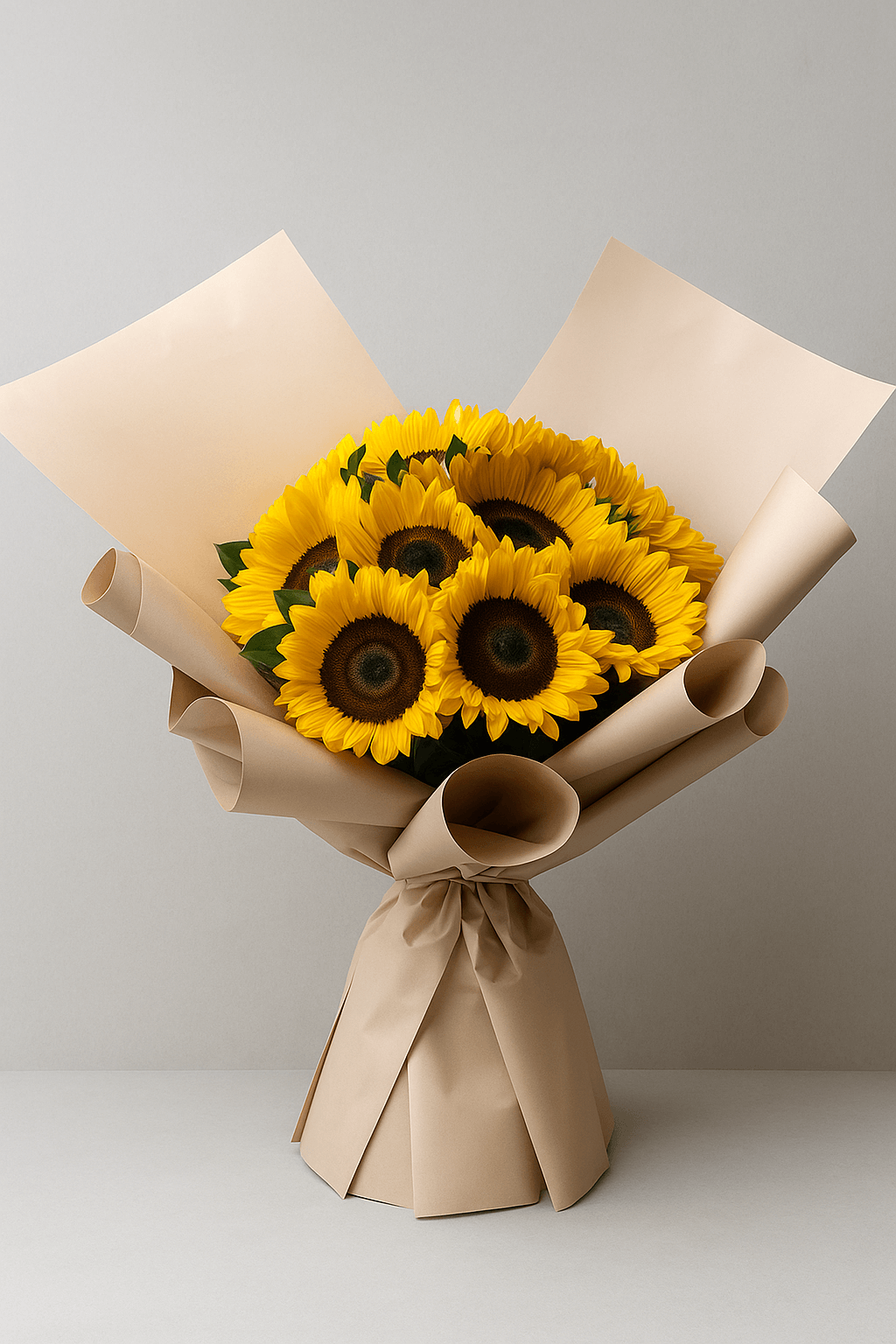 Each sunflower symbolizes adoration, loyalty, and positivity, creating a perfect gesture of love and appreciation. Wrapped beautifully in premium paper, this bouquet adds a splash of golden charm to any occasion.